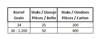 Aansluiting | Diameter | Korrel | Prijs excl. btw |